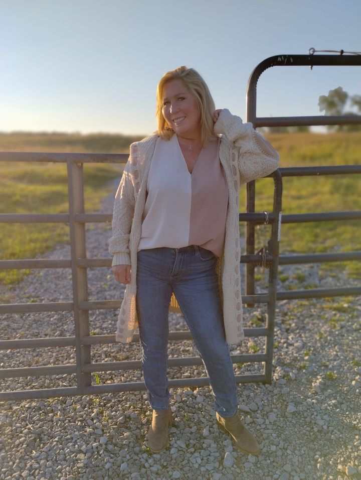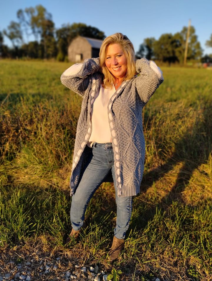 Our Abby is a nice throw on and go Cardigan. Abby is good for those in between cool and cold days and evenings.