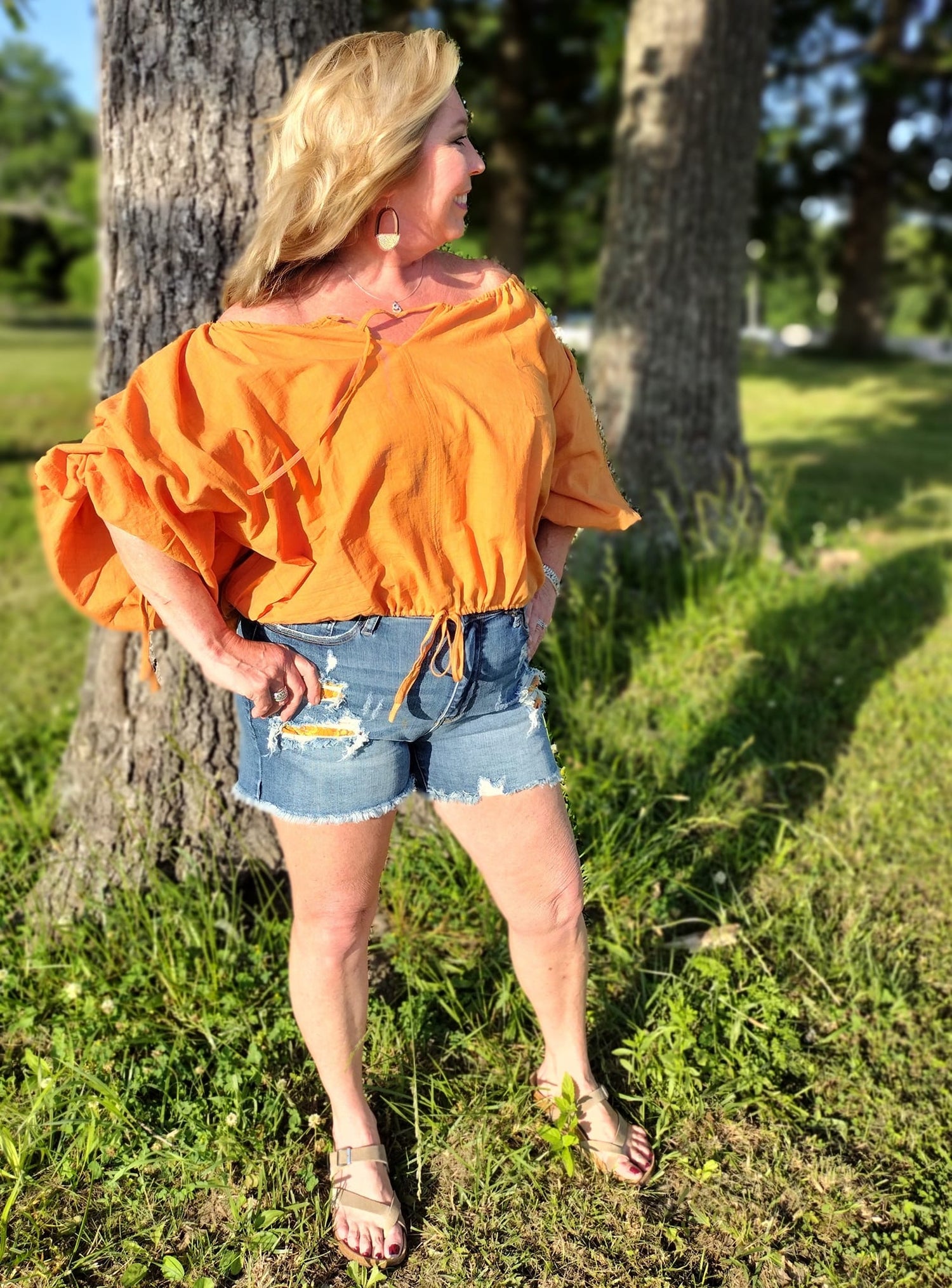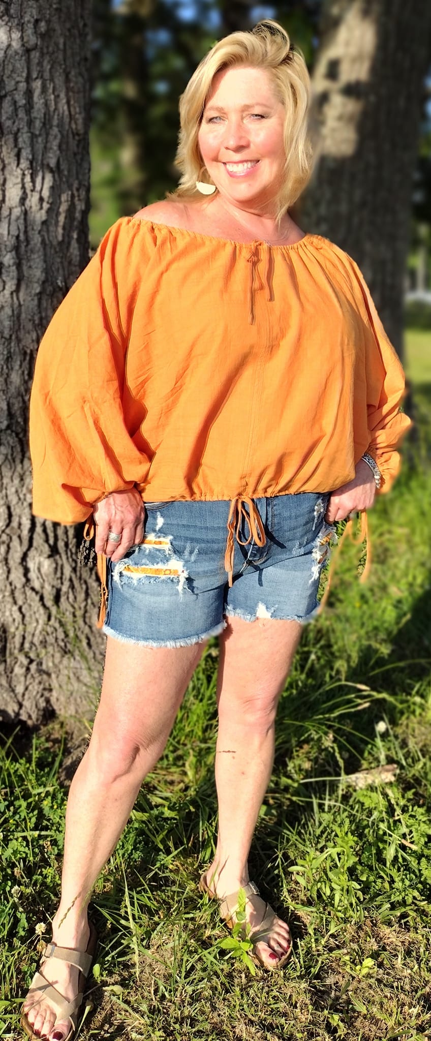 You can literally make the shirt fit any way you want it to fit. Depending on how you decide to tie, the neck, wrist and waist. Wear it off both shoulders, off one shoulder or not off the shoulders at all. Sleeve can be short with a bubble look, or long to your wrist. The waist can be tight or loose. You choose. This is definitely a top you want in your closet for sure. Very relaxed fit. Can size down. 1X, 2X can grab the Large.