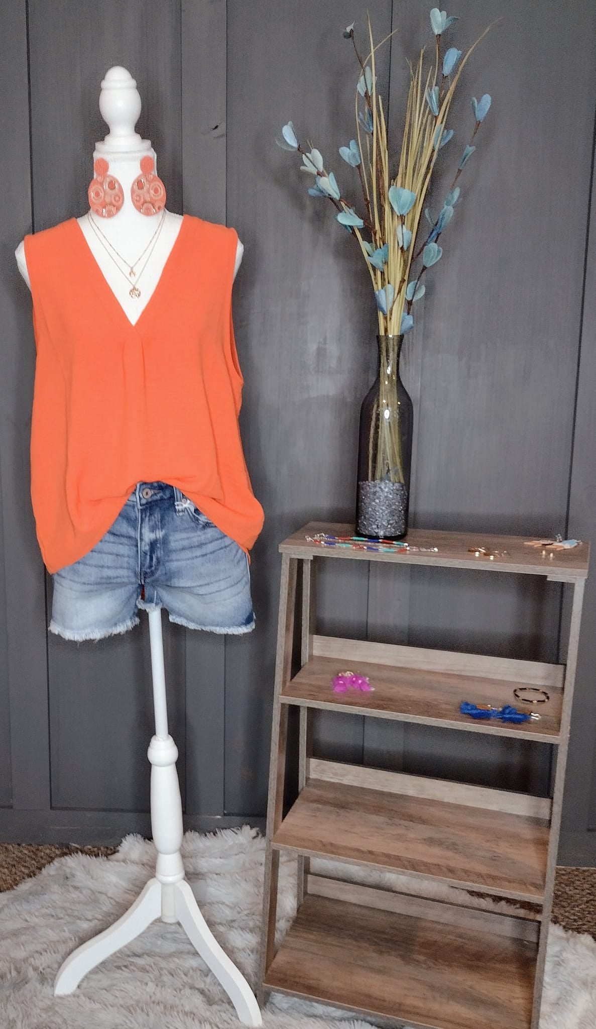 Front Pleat Sleeveless Solid Woven V-Neck Work Wear Casual Top