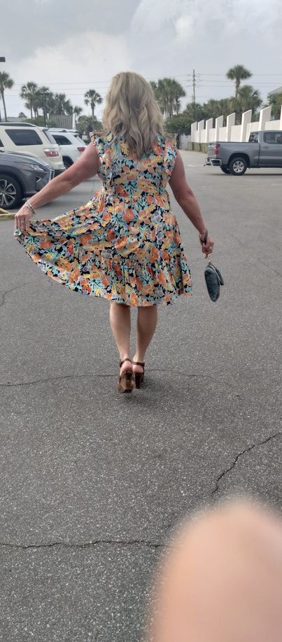 What a beauty Flirt N Floral is! A little flirty and a lot of floral. Beautiful vibrant colors. Wear as is or add a thin lace top underneath for a little extra or a denim jacket would look stunning! Flirt N Floral Dress is lined and has pockets. Very true to size. I do not suggest sizing down.