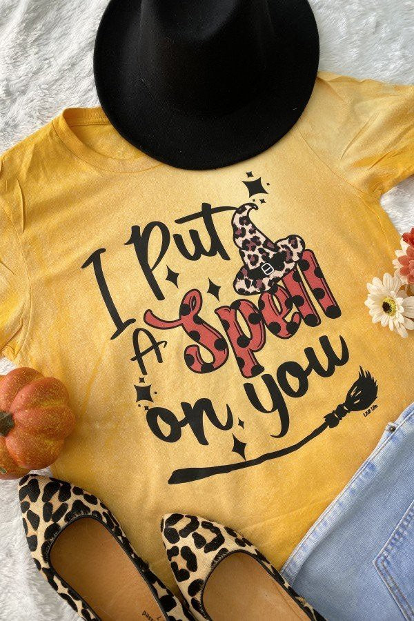 You wanna stand out in a crowd with one of the cutest tees ever, then we have you covered with our I Put A Spell On You Bella Canva Graphic Tee. So cute and colorful. Fully equipped with an animal print witch hat, polka dots and a broom. Perfect for the Fall/Halloween season.