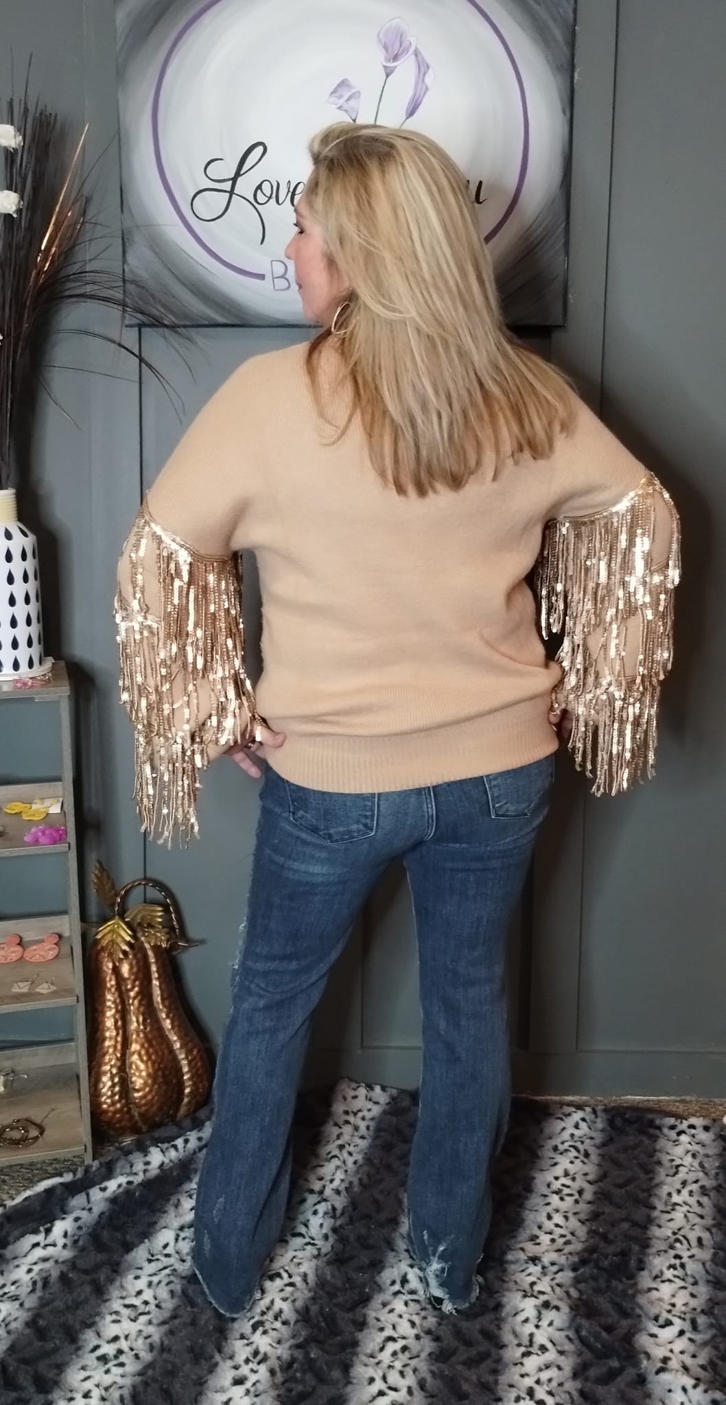 Maybe you want to be holiday ready or maybe you are a little extra! Our Watch Me Shine Sweater will cover BOTH needs! There is so much stretch and softness that comes along with our Watch Me Shine, it's like wearing a dream. True to size relaxed fit. I am a large wearing the large, however could size down to medium with no problem. So much stretch.