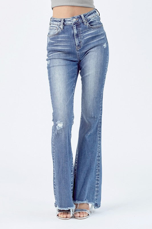 Women's High Rise Vintage Washed Flare Risen Jeans